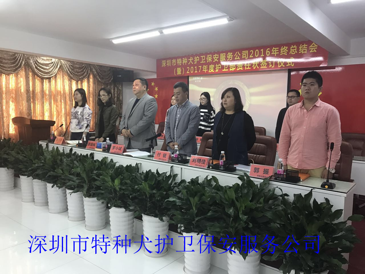 我司召开2016年度工作总结会议及2017年度护卫部责任状签订仪式 全体起立,奏国歌。 总经理发表年度工作总结