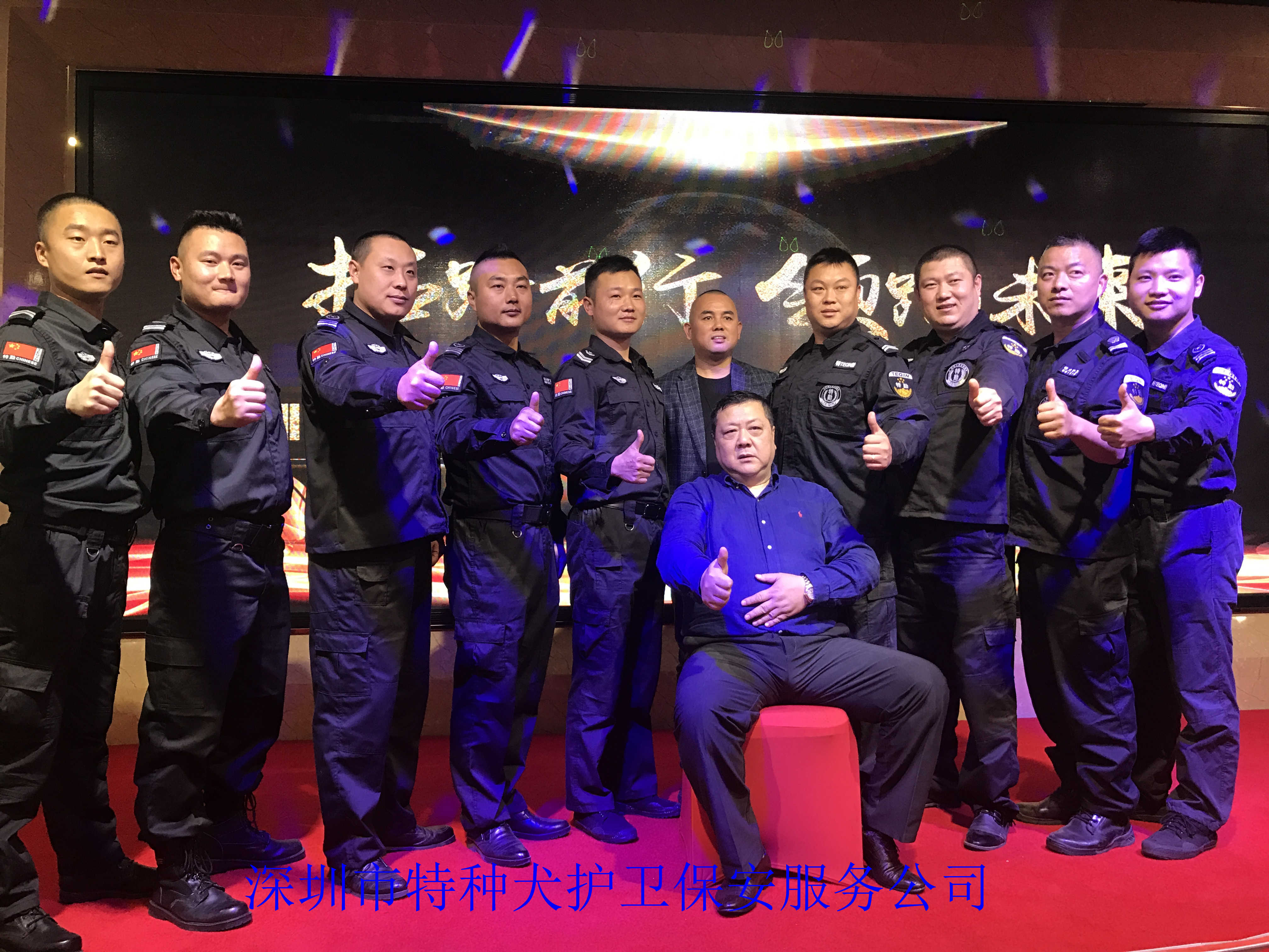 图为我司罗小斌总经理与护卫三部优秀保安员合影