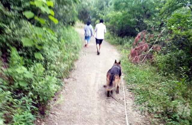 了解情况后,民警一边安抚邓某情绪,一边上报县公安局刑侦大队,请求出动警犬协助搜寻。刑警快速反应,当即安排警犬训导员带警犬赶赴店垭全力搜寻。