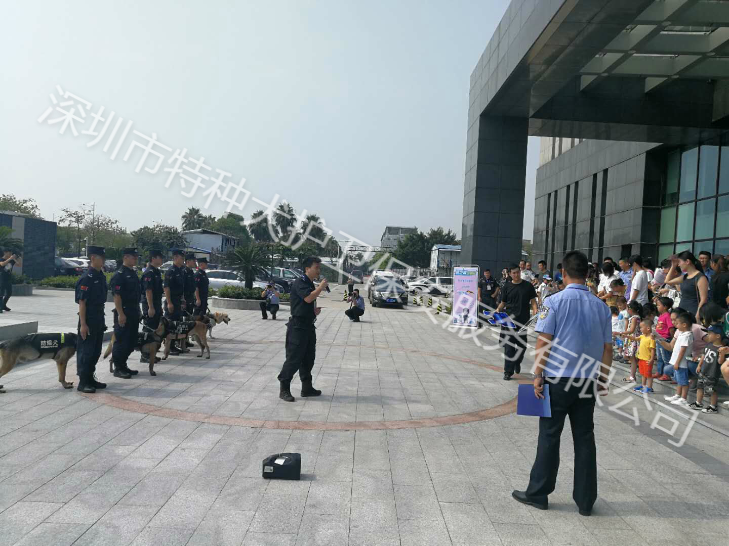 今天上午9点,广东省公安厅机场公安局举行“进警营,游机场暑期亲子活动”,我公司驻广州白云机场犬防队员受机场公安局特警支队指示参与警犬表演,接到表演指令后我司犬防队员按照机场公安局要求认真训练,进行了紧张的彩排工作。在犬防队员的不懈努力下,今天上午的表演取得圆满成功,受到了机场公安局领导和前来参观群众的一致好评,同时也展示出我公司犬防队员的专业技术风采。