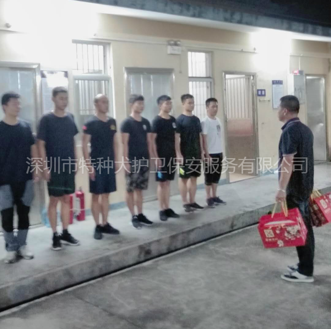 中秋佳节来临之际,公司付锐副总经理亲自到犬防白云机场执勤点慰问看望一线执勤队员,为队员带来节日问候和中秋月饼,在机场屯兵点傅总向队员了解当前勤务情况,中秋国庆即将到来,白云机场客流量增大,对安保工作增加了难度。付总勉励大家要继续发扬公司的优良传统,岗位上认真负责,确保节日期间白云机场安保工作一切正常。