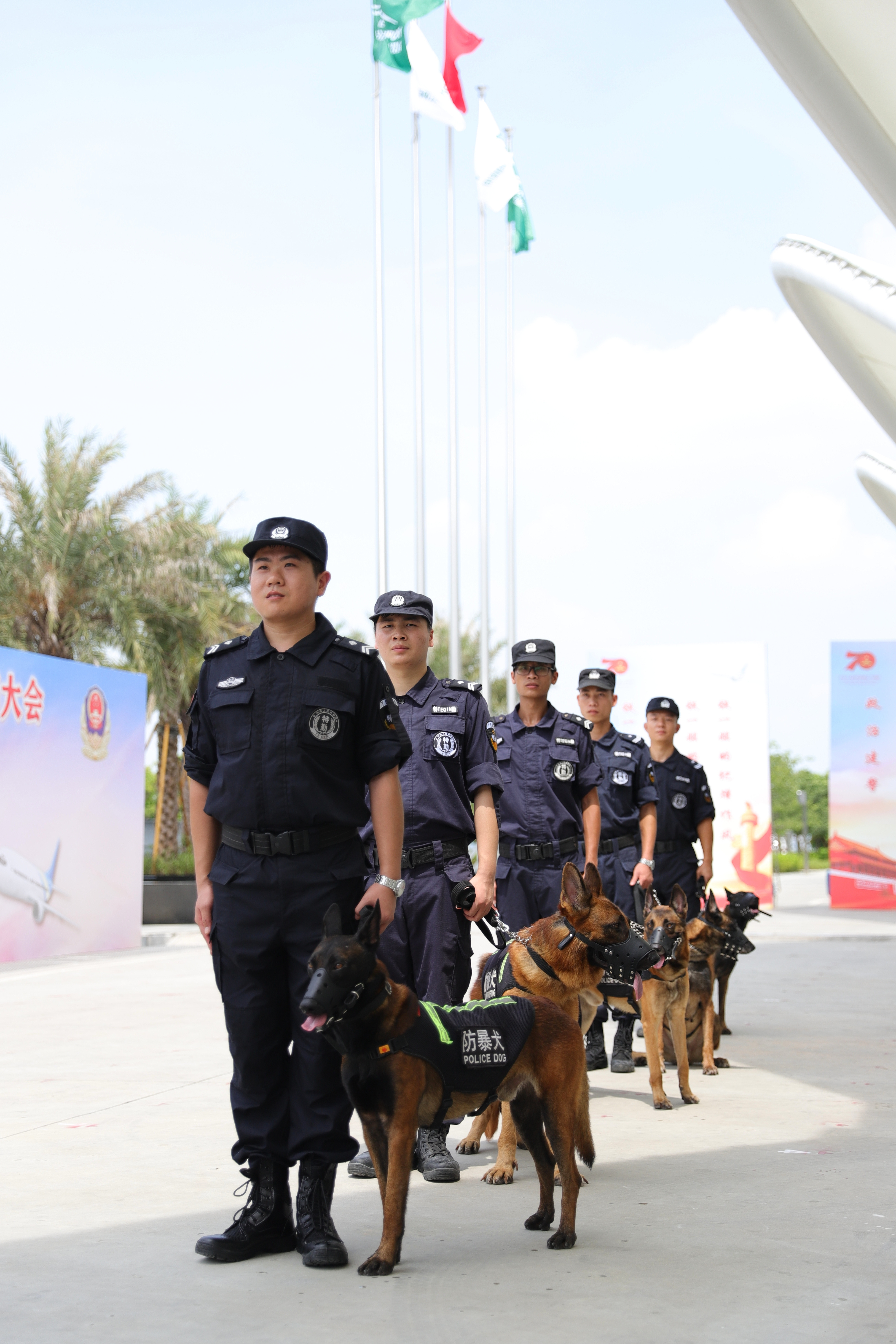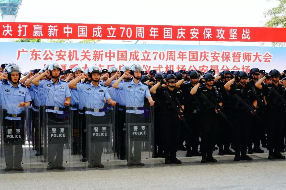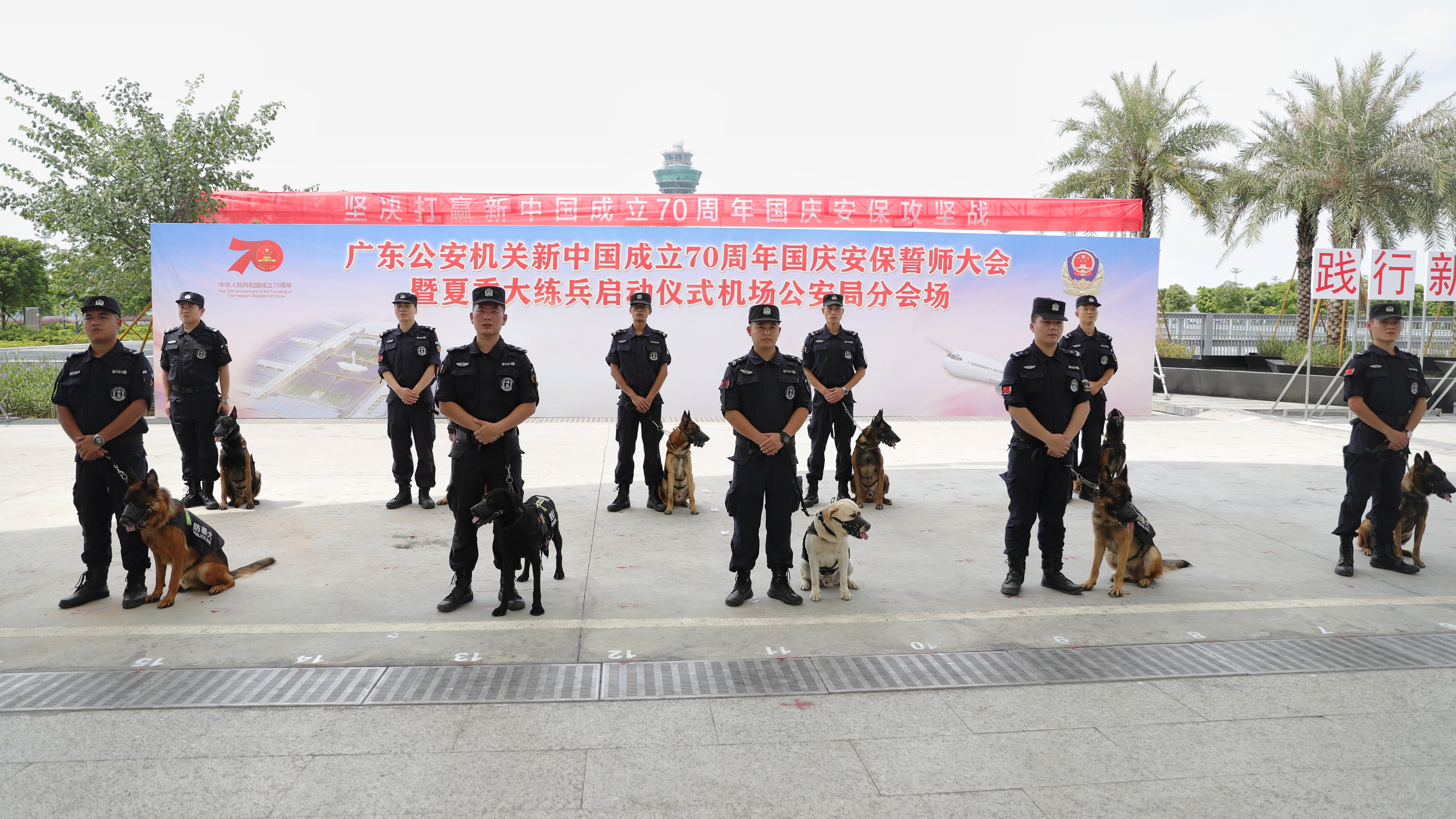 我司驻广州白云国际机场犬防中队参加广东公安机关新中国成立70周年国庆安保誓师大会暨夏季大练兵启动仪式