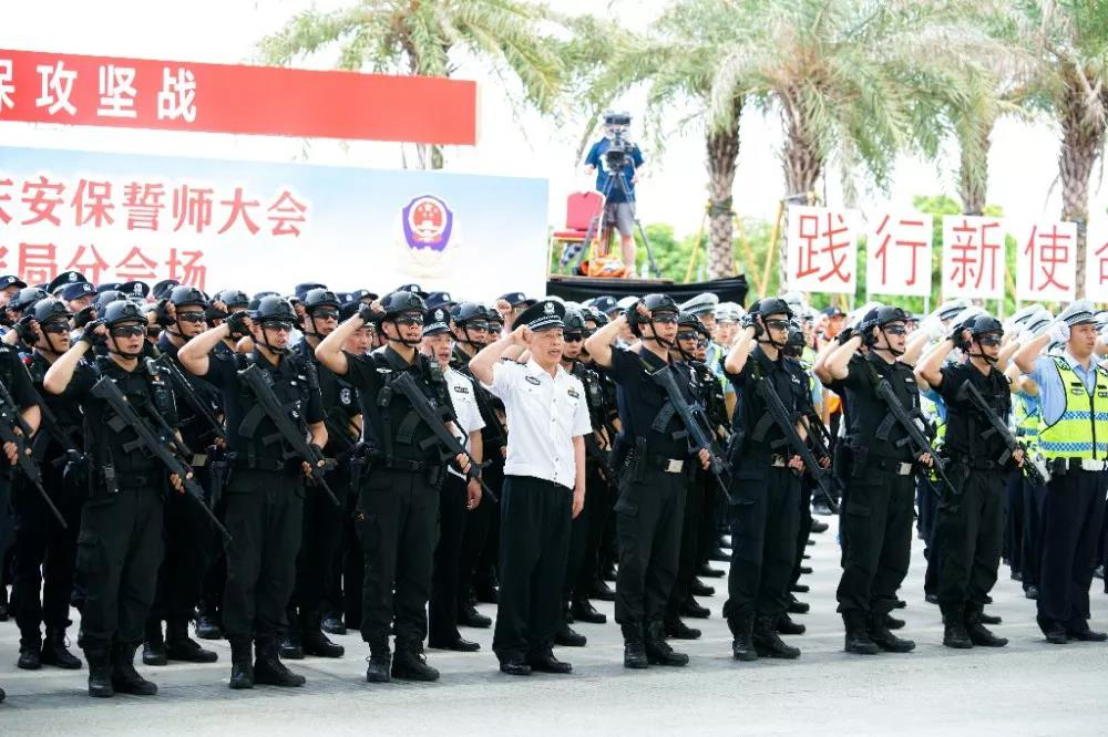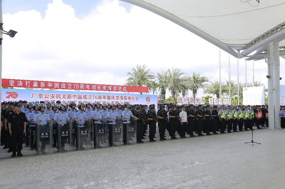 7月30日上午,省公安厅举行广东公安机关新中国成立70周年国庆安保誓师大会暨夏季大练兵启动仪式,机场公安局作为全省8个调度分会场之一,同步参会。全局民警、辅警,辖区消防、安保队员共500余人在白云机场二号航站楼P8停车场楼顶列队集结,参加誓师。