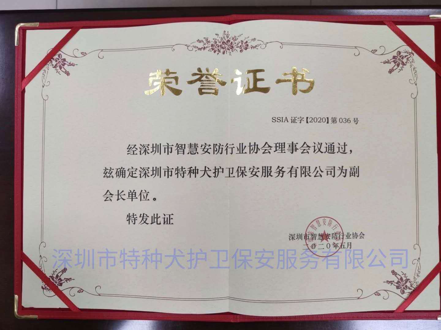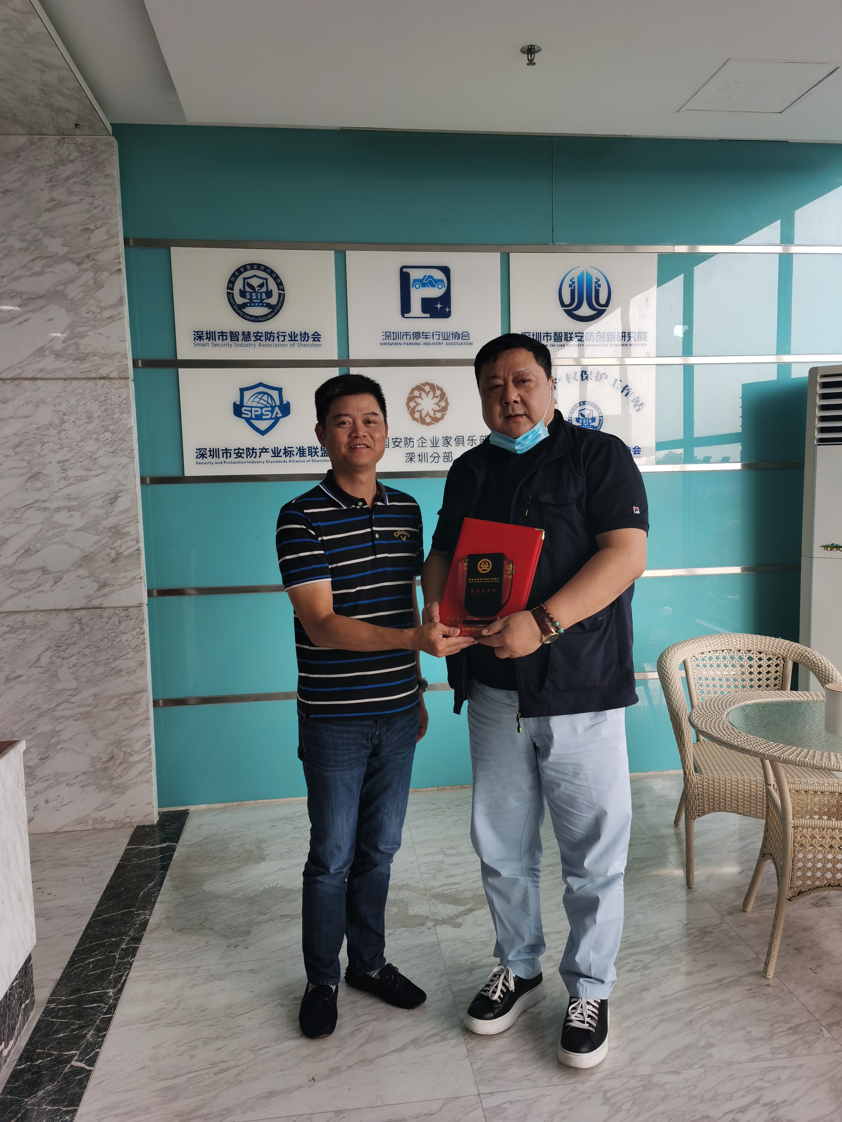 2020年5月19日,作为“深圳市智慧安防行业协会”副会长单位,我公司执行董事罗小斌总经理一行前往协会与深圳市智慧安防行业协会执行会长张毅座谈,并领取了副会长单位证书和牌匾。座谈会自始至终洋溢着积极向上的气氛,双方就安防行业标准制定,尤其是犬防行业的标准制定充分交换了意见,对实行人防、犬防、技防立体化、全方位的治安防范体系统一了认识,为推进犬防行业标准化进程搭建了实质性的框架,为犬防实现科技化发展阐明了观点、指明了
