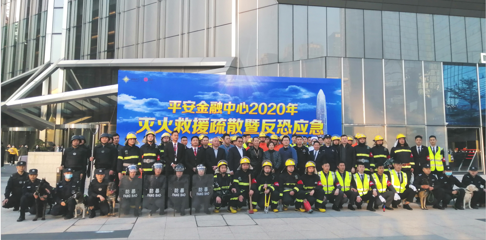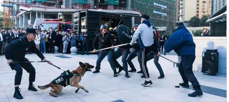 2020年12月18日,平安金融中心举行2020年灭火救援疏散暨反恐应急综合演练,我司驻点犬防队派出8组犬参加演练,并圆满完成任务。