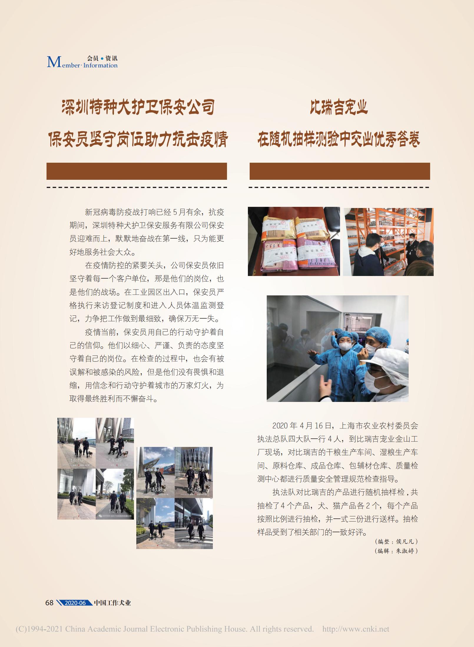 我公司投稿的两篇文章在中国工作犬协会出版的杂志《中国工作犬业》上刊登
